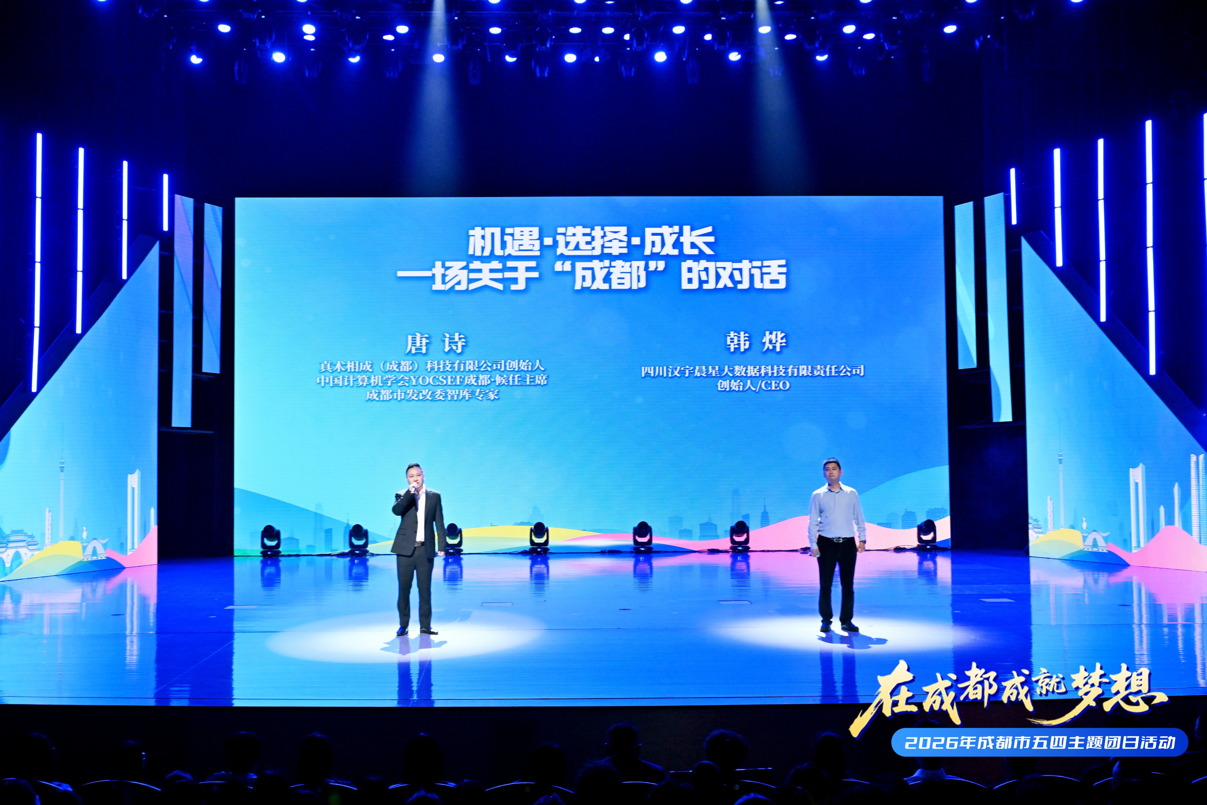 4月28日,“在成都成就梦想”2026年成都市五四主题团日活动上,一场名为《机遇·选择·成长——一场关于“成都”的对话》的特别演讲引发全场共鸣。真术相成(成都)科技有限公司创始人、成都市发改委智库专家唐诗,与青年创业者韩烨一道,用“你讲政策,我讲故事”的方式,呈现了一座城市与青年创业者双向奔赴的真实样本。